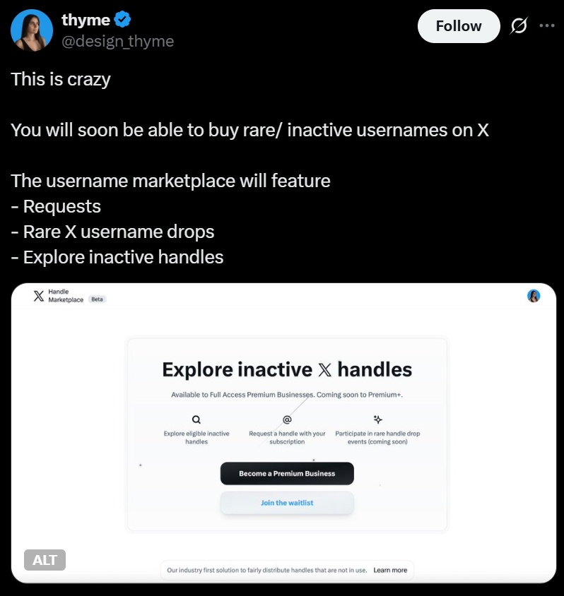 尽管如此,此次发布凸显了社交媒体身份货币化方式的更广泛转变,用户名本身现在已成为身份的象征和潜在的投资资产。