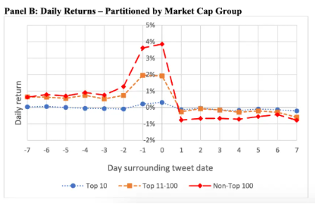 ● 根据哈佛大学商学院等机构的研究员于2024年5月发布的研究结果,加密货币KOL喊单后,代币在一天内的平均回报率为1.83%,但对于市值前100名之外的代币,这一数字高达3.86%。然而,这种涨势难以持续。研究表明,推文发布第二天到第五天的平均回报率为-1.02%,超过一半的初始涨幅在五天内被消除。