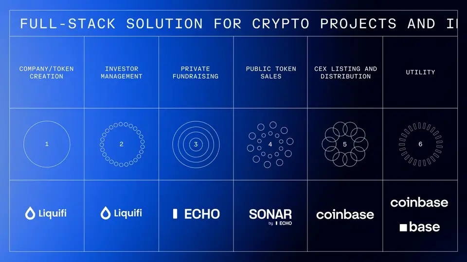 Echo与我们最近收购的Liquifi形成了良性互补。Liquifi让早期团队更高效地进行代币创建与股权管理;而Echo则将我们的支持范围从「启动阶段」延伸到「募资阶段」。
