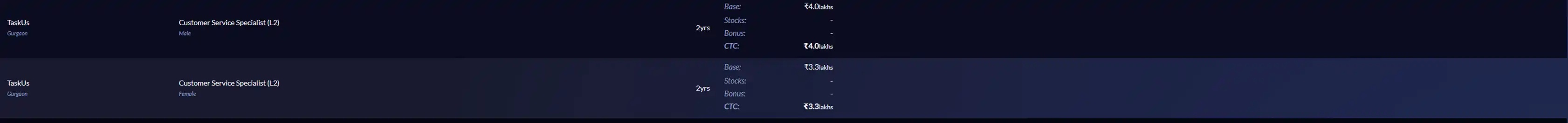 根据6figr.com的数据,TaskUs为客服支持岗位所开出的薪资为年薪33万-40万卢比,换算成美元约为3700–4440美元。折算成日薪,每天的薪水也就不超过15美元。