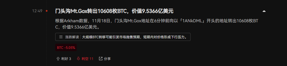 本次转账没有流向交易所,不是卖!主要下跌来自整体市场情绪,而非Mt.Gox单一事件触发。
