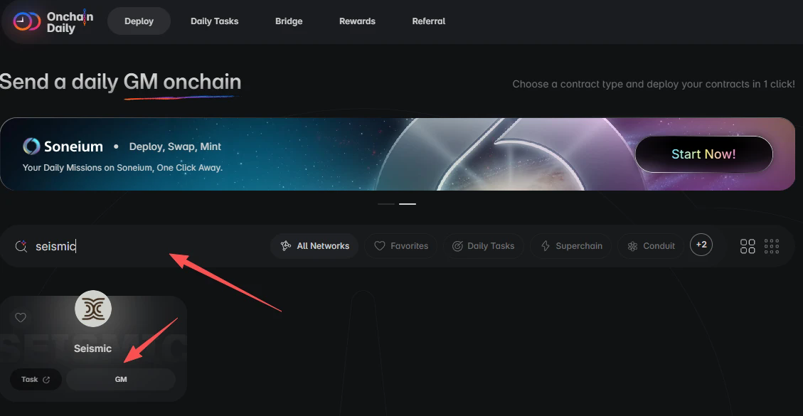 STEP 2. 部署合约(链接:https://www.onchaindaily.io/)。
