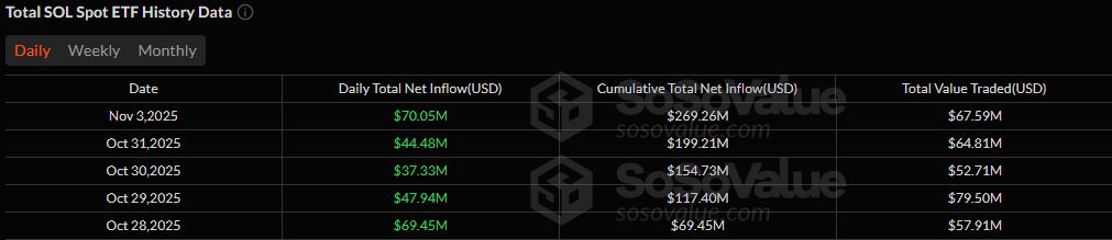 Solana ETF吸引了7千万美元的新资本,因为投资者转向高成长性的Layer-1资产,超越比特币和以太坊。