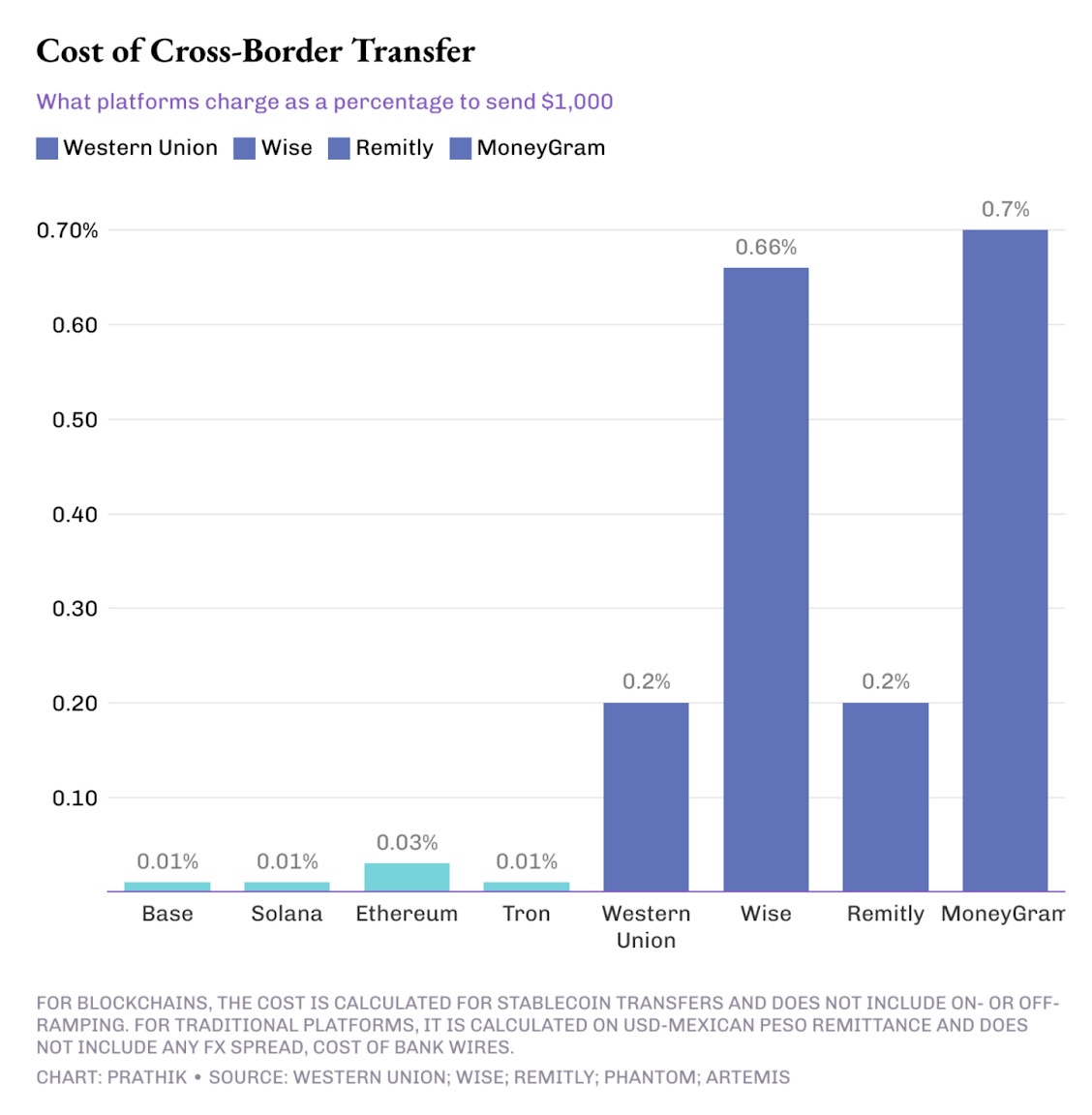 相比之下,在以太坊、Solana或Tron上进行USDC或USDT转账只需几秒或几分钟即可完成结算,手续费最高仅为30美分。尽管如此,传统的跨境平台仍然占据主导地位。为什么?