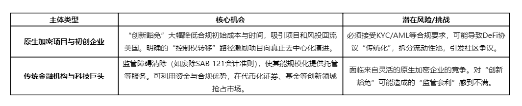 2026年,随着“创新豁免”正式落地和《CLARITY法案》的推进,美国有望迎来一波“合规创新”潮。然而,挑战依然存在: