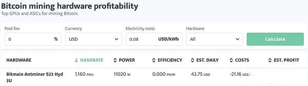 当前最新款 BTC 矿机每日收益 ~$23,静态回本周期约 3.4 年