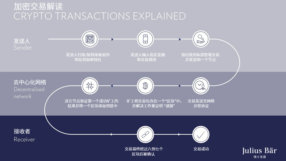 为了解释加密货币如何运作,让我们以比特币交易作为例子。原则上,无论使用哪种加密货币,所涉及的机制都是相同的。要直接交易比特币,您和您希望向其转账的人士都需要有一个比特币钱包地址。这是一组随机生成的独特数字和字母组合。通过分享您的公共地址,其他人可以向您发送数字货币。