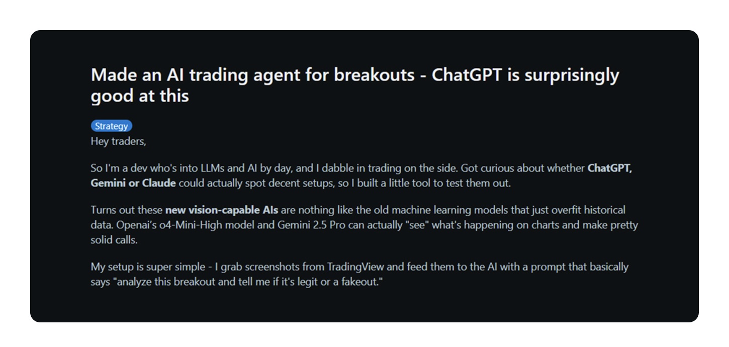 ● 自动化潜力:通过API集成,ChatGPT可被整合到交易机器人或分析仪表板中实现持续监测。