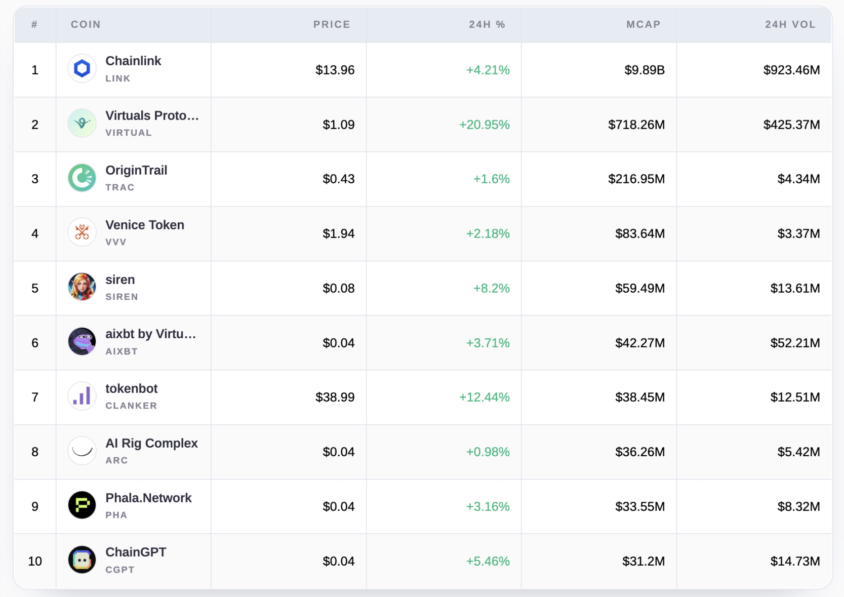 24小时成交排行榜