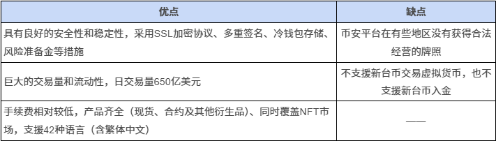 每个虚拟货币交易所都有自己的优点与缺点,没有哪个虚拟货币交易所是绝对完美的。因此,最好不要把所有资产都放在一个平台,而是存放在多个不同平台。币安虽然是目前全球第一的交易所,但是并不意味着绝对安全。其中,门头沟平台曾经也是全球第一,最后也倒闭了。