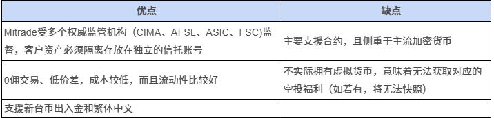 Mitrade是一家差价合约交易所。和纯粹的虚拟货币交易所不同的是,差价合约的监管系统已经经历了30多年的历史,在资金安全、客户服务、风险提示、出入金系统等方面做的完善很多,有独立的隔离资金监管账户,交易所挪用资金的问题很难发生,而币圈就是司空见惯了(FTX就是因为SBF随意挪用客户资金而大幅亏损)。
