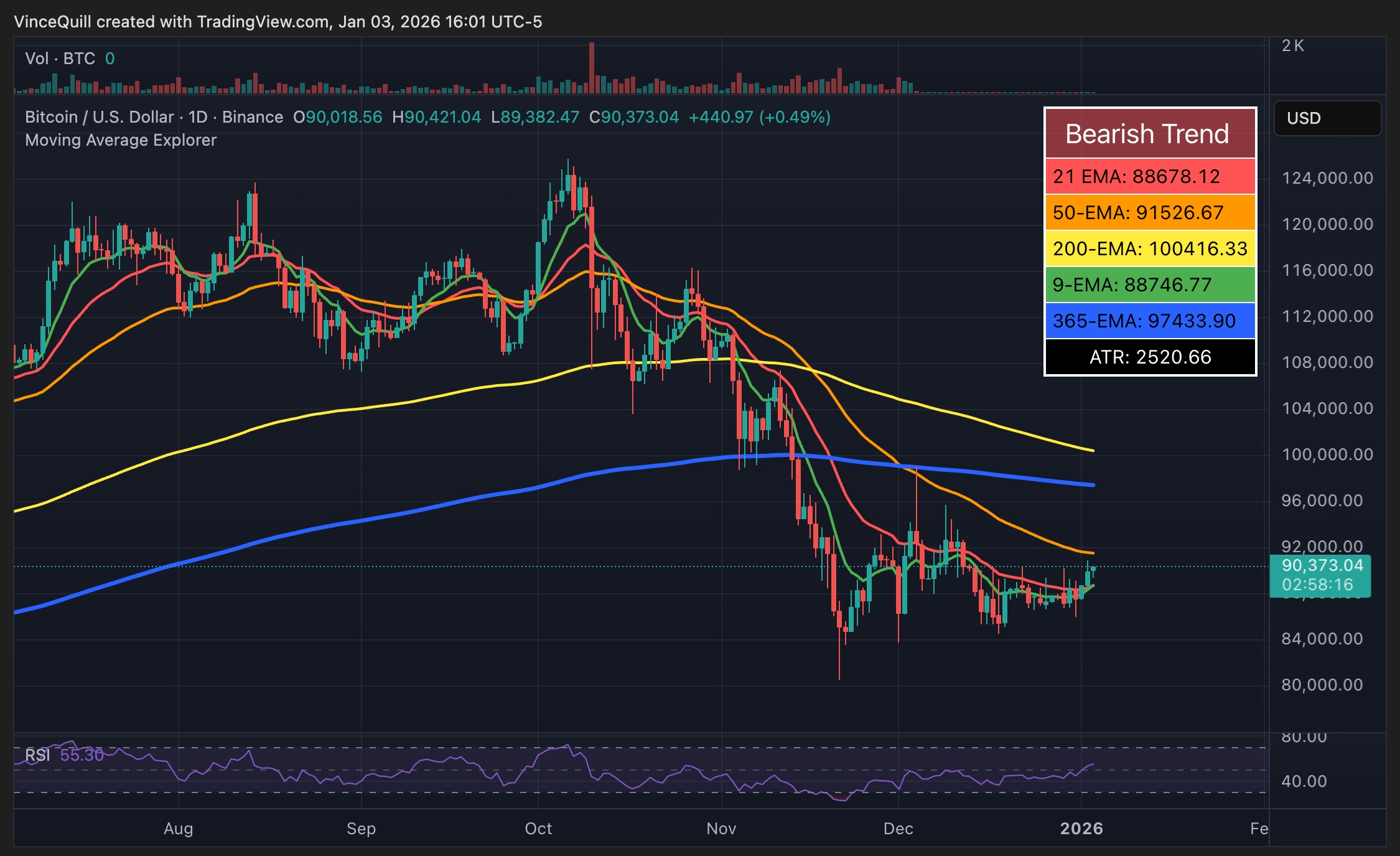 尽管美国对委内瑞拉的袭击事件周六占据了各大媒体的头条,但比特币的价格几乎没有波动。来源:TradingView