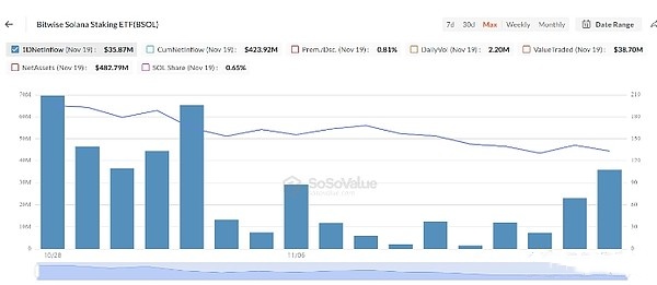Bitwise Solana ETF净资金流动。数据来源:SoSoValue