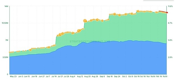 来自StrategicETHreserve.xyz的数据显示,自11月11日以来,战略储备和ETF的总持有量已减少了280,414 ETH。