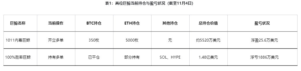 11月4日,加密市场再度被两位传奇巨鲸吸引目光——“1011内幕巨鲸”与“100%胜率巨鲸”意外同时做多比特币,引发全圈关注。曾精准预测10月11日市场闪崩、狂赚近2亿美元的“1011内幕巨鲸”,在沉寂一个多月后首次回归多头;而近一周亏损近4000万美元的“100%胜率巨鲸”,在割肉平掉价值2.58亿美元多单后,仍坚守剩余1.48亿美元仓位。这两位大户的同步布局,让市场陷入猜测:这是比特币即将筑底的信号,还是另一场行情风暴的前奏?