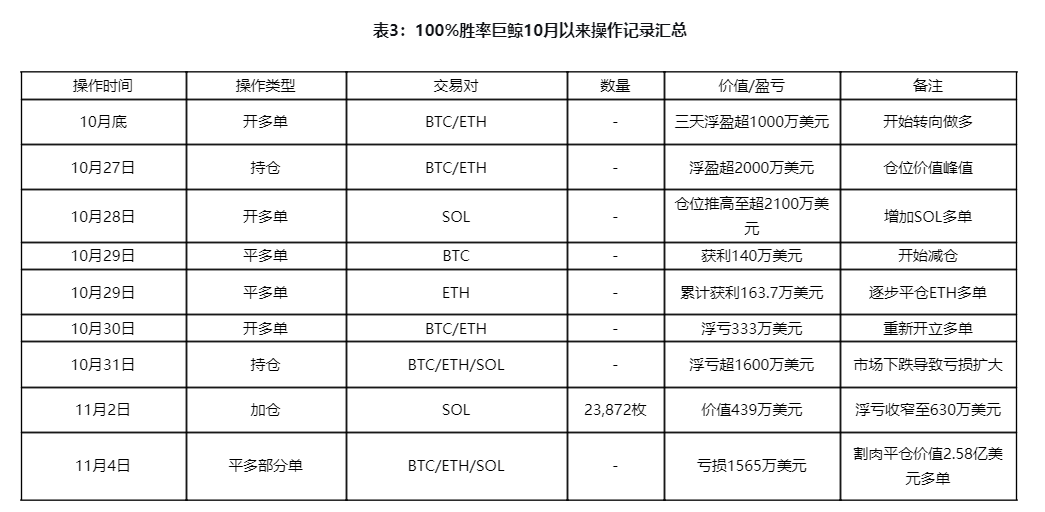 从表格中清晰可见,100%胜率巨鲸近20天通过14次交易赚取的约1583万美元利润已几乎全部回吐,这也是其封神后遭遇的最大滑铁卢。