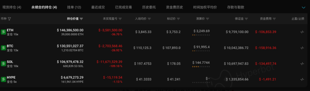 然而,危险同样存在。“100%胜率巨鲸的持仓距离清算仅剩8%,ETH清算价为3196美元,SOL为143.5美元。这些关键价位一旦失守,可能引发连锁清算,加速市场下跌。” 链上分析师余烬警告道。