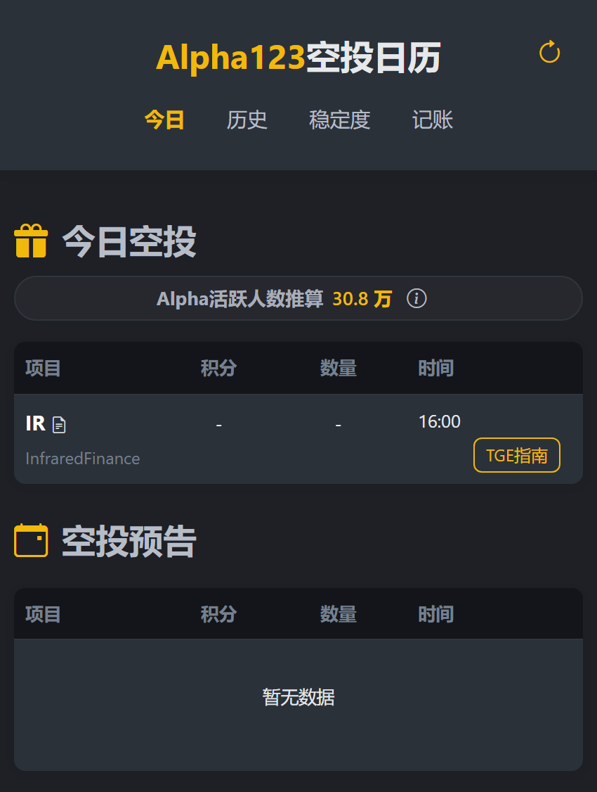 💎 项目介绍:Infrared Finance(IR)是一个Berachain生态的核心DeFi基础设施协议,把不可转移的BGT和BERA变iBGT/iBERA液体资产,一键参与PoL赚最大奖励,还跑节点和金库,帮用户轻松薅Berachain羊毛!今天是标准版TGE,需要3个BNB,没有的兄弟可以提前去借贷了,不建议临时买。
