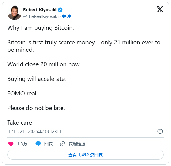 以《富爸爸,穷爸爸》作者闻名的罗伯特·清崎(Robert Kiyosaki)于23日在其社交媒体上透露,自己正在购买比特币(BTC)。