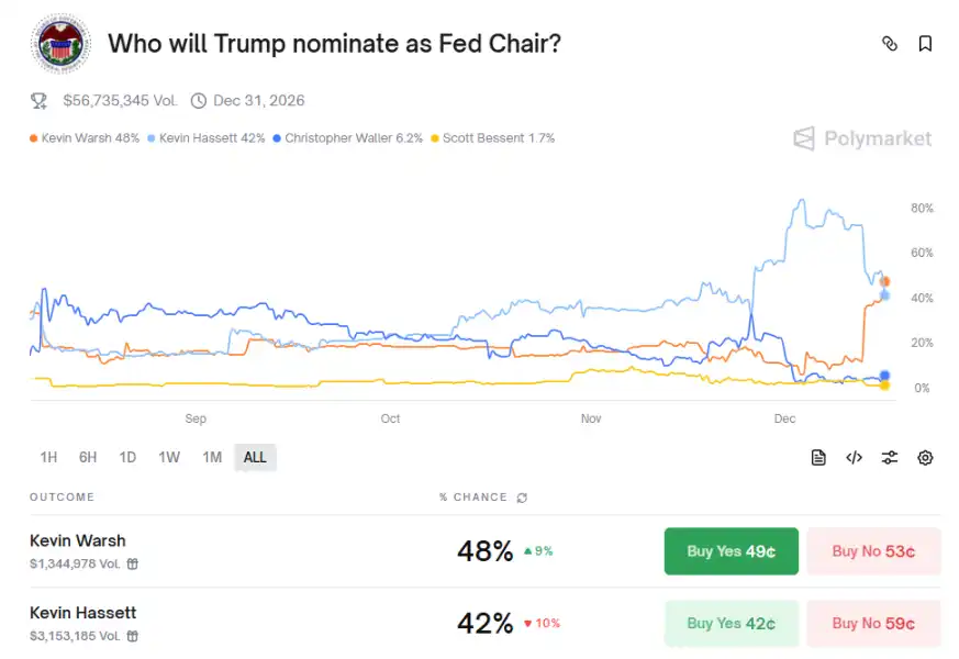 最近华尔街的风向有点像追剧反转。原本呼声不低的哈塞特,在预测市场里忽然被前美联储理事凯文·沃什反超。导火索来自特朗普一句随口评价:两个凯文都不错,却直接让市场重新下注。德银的解读更耐人寻味:如果沃什上位,政策可能不走寻常路,而是边降息、边缩表,一手给糖一手收紧。Kalshi 和 Polymarket 的数据也迅速翻脸,胜率曲线比股价还刺激。总体来说,主席人选还没定,但市场已经开始提前适应——美联储未来,可能不再只盯着一个按钮。
