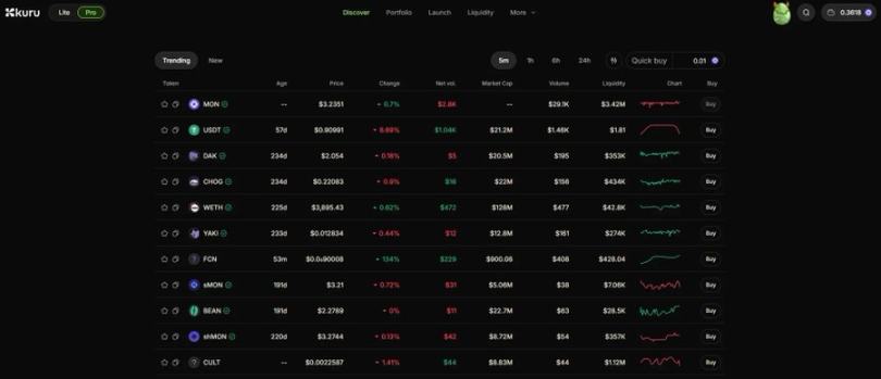 ● Nad.fun:一个 Meme 币启动板和交易平台,具有类似于 pump.fun 的简单界面,任何人都可以轻松使用。