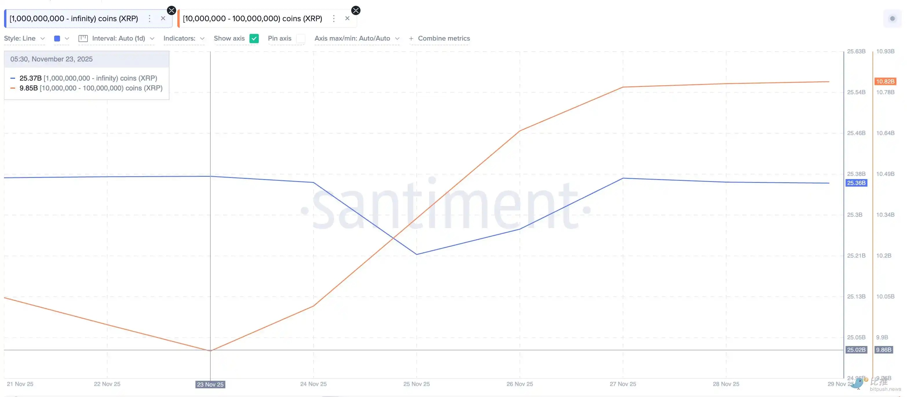 ● 持有1亿-10亿枚XRP的地址净增加9.7亿枚