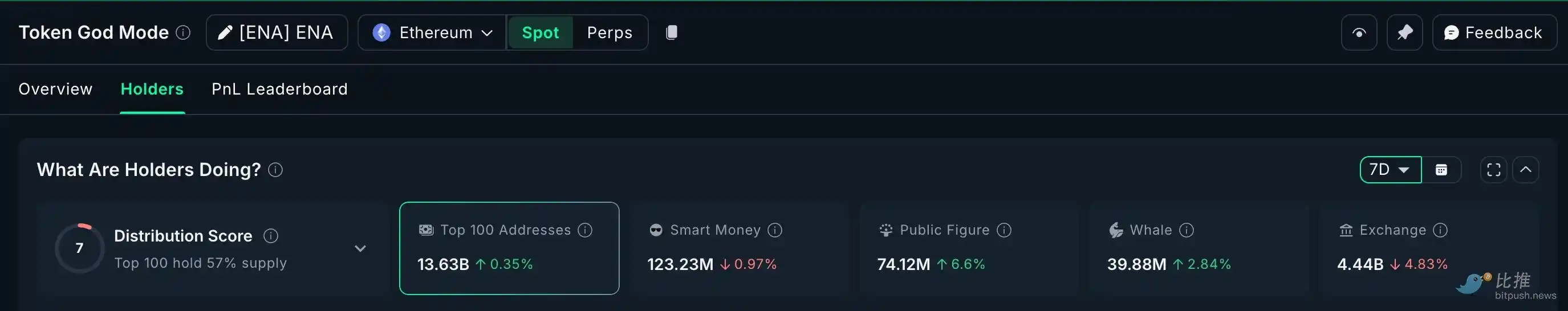 ● ENA(Ethena):过去7天巨鲸持仓增长2.84%,顶级100地址增持超5000万枚