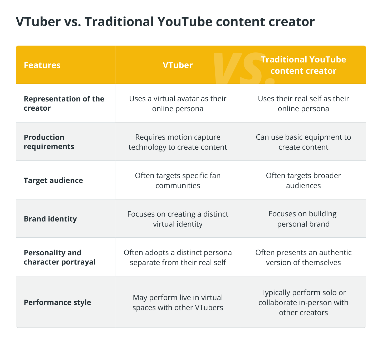VTuber是否仅仅是拥有独特虚拟形象的YouTube创作者?事实并非如此简单。这种区别主要体现在他们的内容呈现方式上。传统YouTube创作者通常以真实面貌出镜,而VTuber则采用动画化的虚拟形象来塑造其线上角色身份,无论是来自太空的外星生物还是会说话的猫咪。