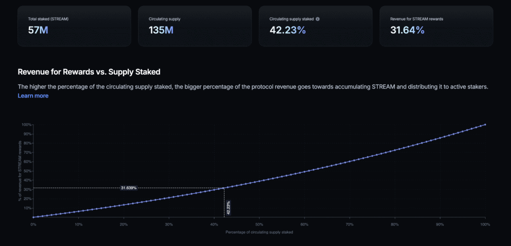 $STREAM质押量达到历史新高5700万枚,占流通量的42%。