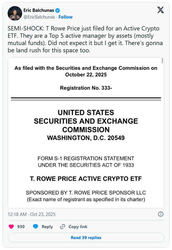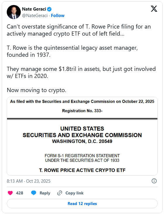 T.Rowe Price加密货币ETF令人惊喜