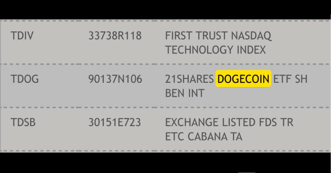 21Shares 的狗狗币交易所交易基金 (ETF) TDOG 最近出现在美国证券托管结算公司 (DTCC) 的活跃及预发行名单上,股票代码为 TDOG。此次上市旨在连接经纪商和清算机构,为潜在的交易做准备,但并不代表已获得监管机构的批准。