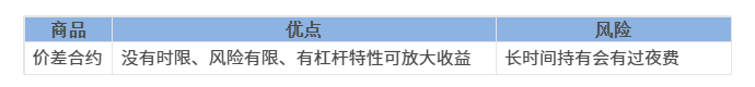 CFD也不会和期货一样亏损无穷大,由于并没有实际购买产品,最大亏损就是本金归零,缺点就是相对期货来说,价差合约的杠杆如果隔夜需要支付过夜费(借款利息),因此CFD是适合短期交易的工具。