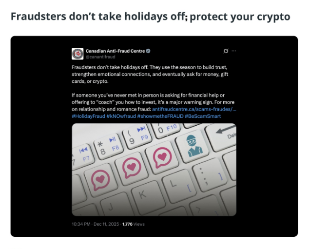 在这个假期保持警惕:验证每一个优惠,只使用官方应用,保护你的密钥,加强账户安全,三思而后行避免情绪化决策,确认慈善机构和赠品的真实性,并保持信息更新以保护你的加密资产免受诈骗。