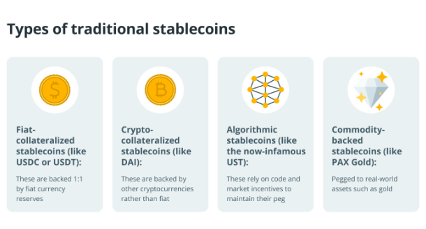 并非所有稳定币都是以同样的方式构建的。 以下是常见的类型: