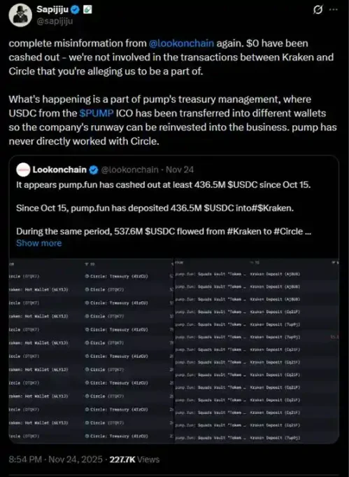 而随后,Lookonchain 的一条推文让市场开始传言「pump.fun 跑路了」: