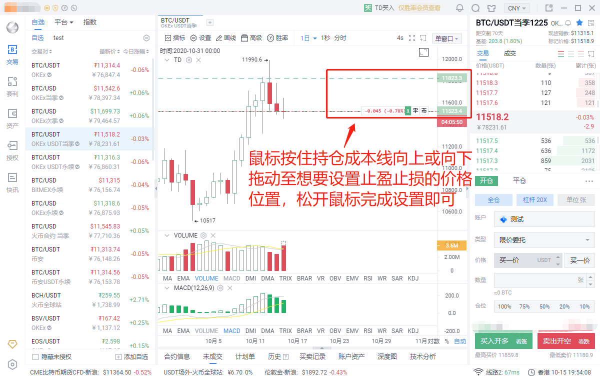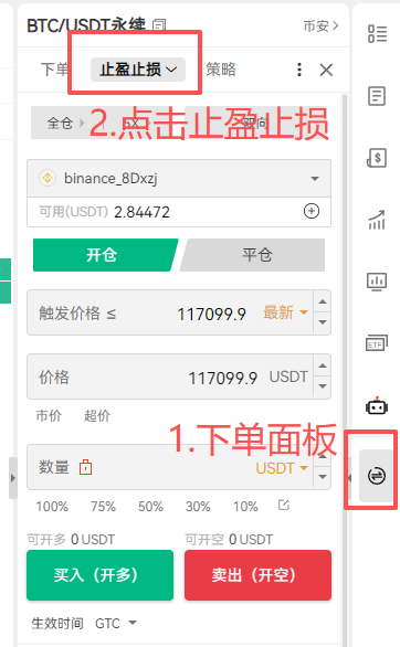 2、在下单界面,找到“止盈止损”选项,设置好你想要平仓的价格。