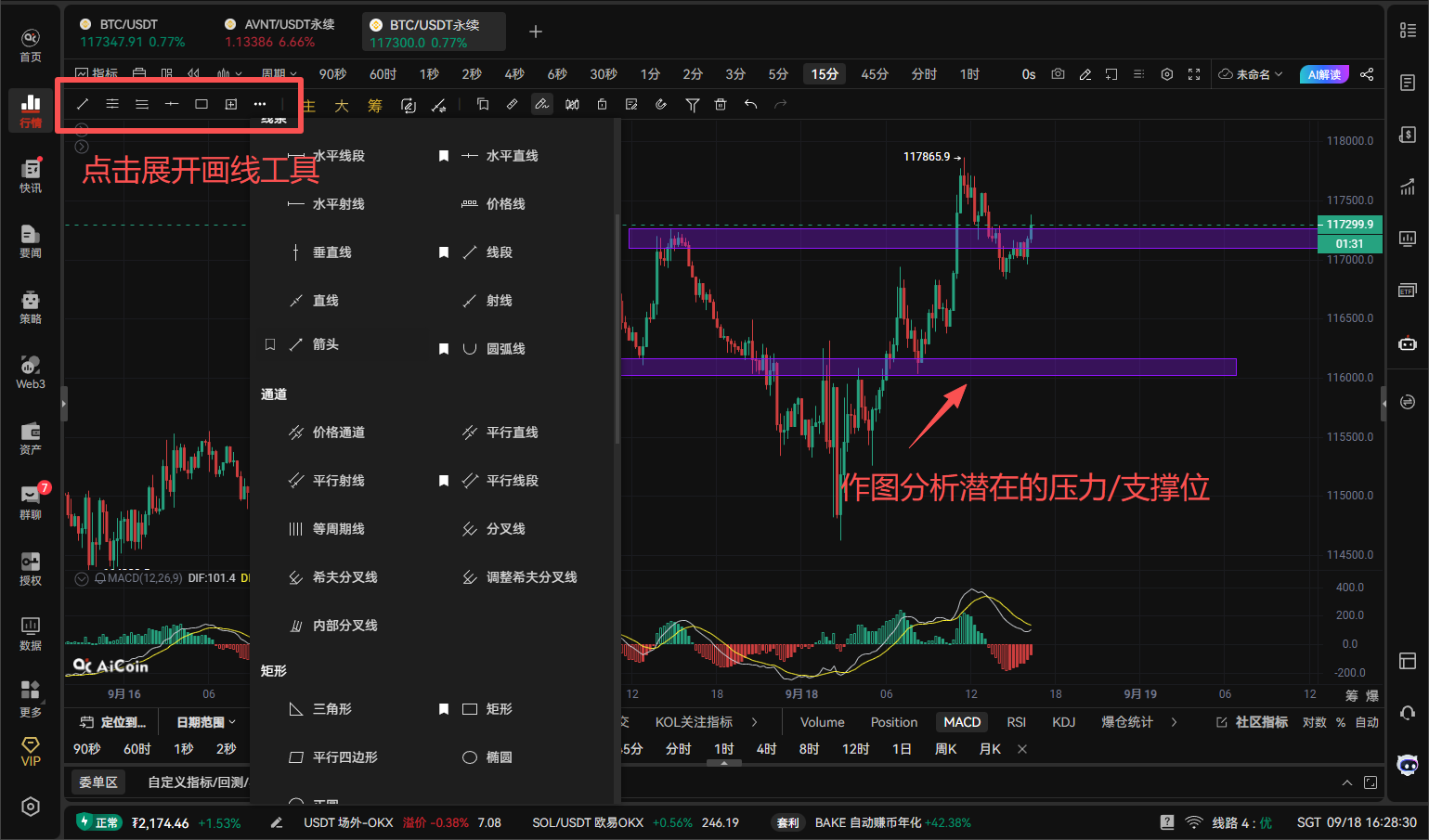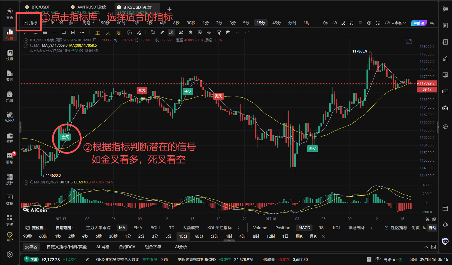 ● 看各种指标:比如MACD、布林带,这些指标能帮你判断价格趋势,是涨还是跌。
