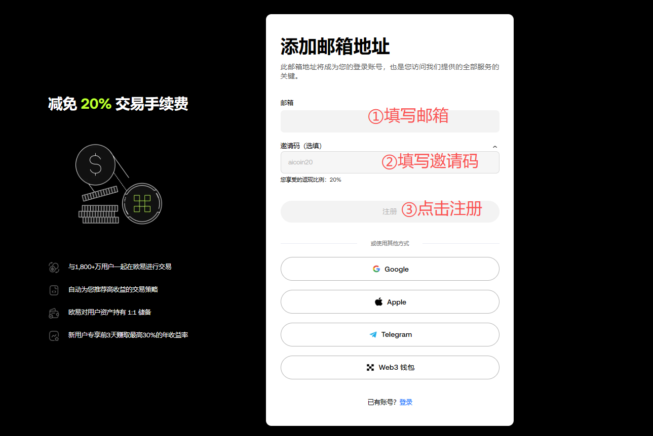 注册过程很简单,就像开个银行账户,填个邮箱地址,设个密码,然后进行身份验证。几分钟搞定,你的加密世界之旅就正式开始了!