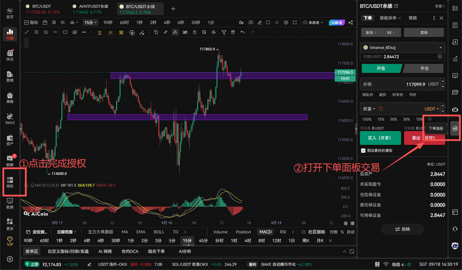 你可以直接 授权交易。看准时机,一键下单,不管是看涨买多,还是看跌卖空,都可以在一个界面里完成。