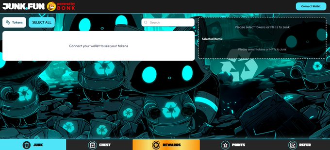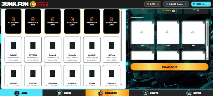 用户可将 「归零 MEME、被动接收的垃圾空投、NFT」 在 Junk.Fun 销毁,换取 SOL。销毁后,用户将在 Junk.Fun 得到 Credits。