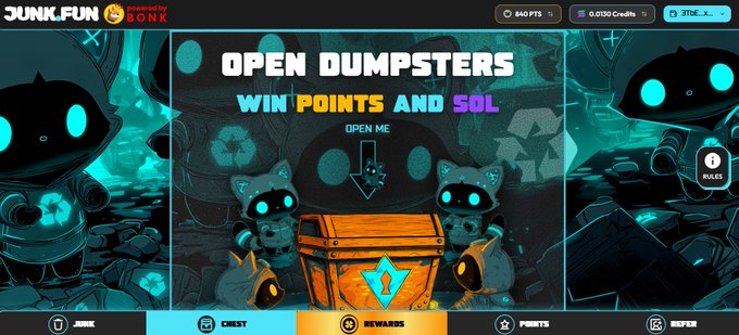 2)开启 Junk.Fun 宝箱,赢取更多 SOL、实物奖品 (如 iPhone)、NFT 以及未来空投中的其他奖励。