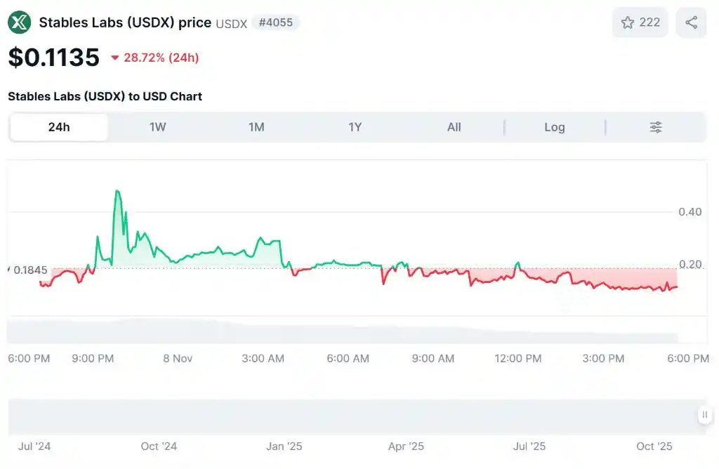 截至目前,USDX的发行方Stable Labs尚未对此事发表任何评论。据The Block价格页面显示,尽管USDX价格曾短暂飙升至1.11美元以上,但截至发稿时已跌至0.113美元左右,市场的恐慌情绪仍在发酵。