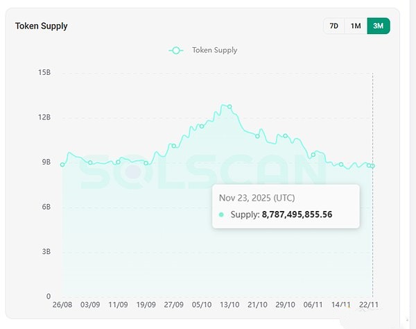 USDC下降背后,主要是Solana链近一个月的USDC发行量下降了18.24%,10月11日,Solana链上发行的USDC总量约为128亿美元,到11月23日则下降至87亿美元,总量减少了41亿枚。