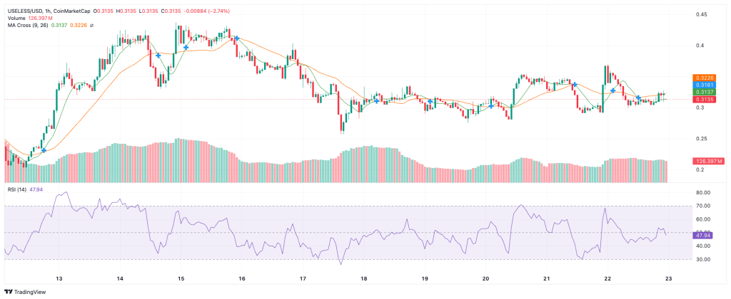 无用币 (USELESS) 的迷因币大户似乎正在加码,相信在10月结束时,这是这个领域中少数显示出真正实力的代币之一。虽然几乎所有主要的迷因币在过去一周都有修正,但无用币在过去24小时内上涨了4%。在过去30天内也上涨了近82%,证明它仍然吸引着强劲的购买兴趣。这种稳定的上涨似乎得到了大户的支持。在过去的一天里,大户再次在购买,将他们的持有量增加了1.15%,达到2.4772亿个无用币。这是大约281万个代币的增加,以目前每个0.30美元的价格计算,价值约84.3万美元。