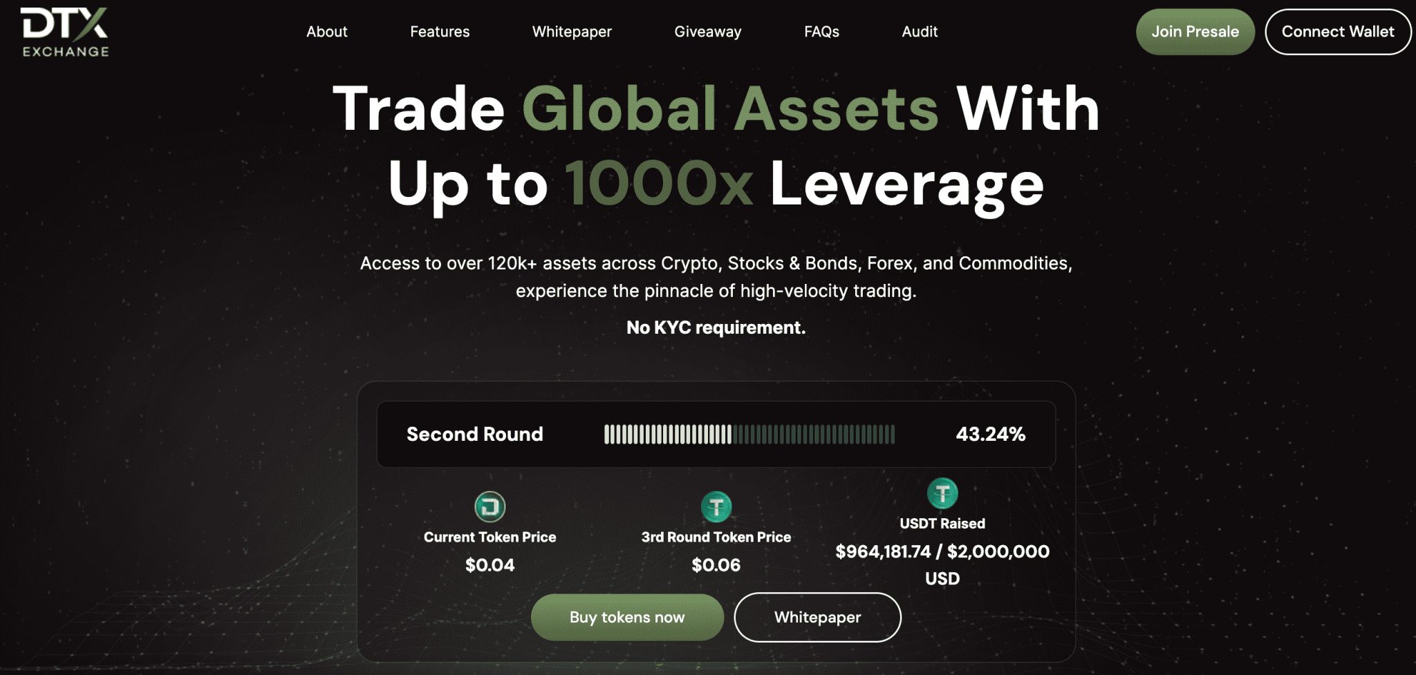 持有 $DTX 代币可以获得治理权利,使您能够对平台的关键决策进行投票。此外,您还可以使用 $DTX 在交易所获得交易折扣。该平台计划扩展其产品,包括代表现实世界金融工具的代币化资产,仅限 $DTX 持有者访问。