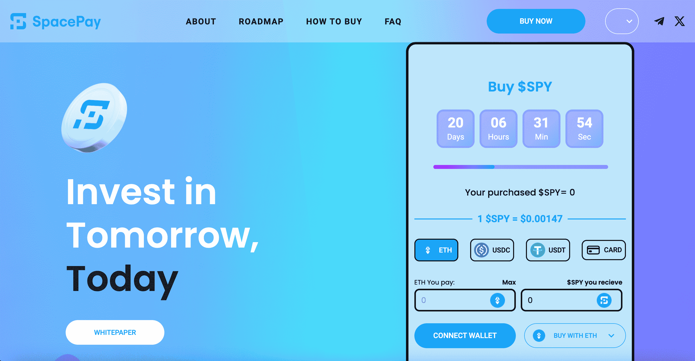 下一个可能在2024年爆炸的代币是SpacePay ($SPY)。这是一家总部位于伦敦的金融科技初创公司,为支付公司提供下一代加密解决方案。SpacePay 允许客户在零售店使用加密货币作为支付选项。