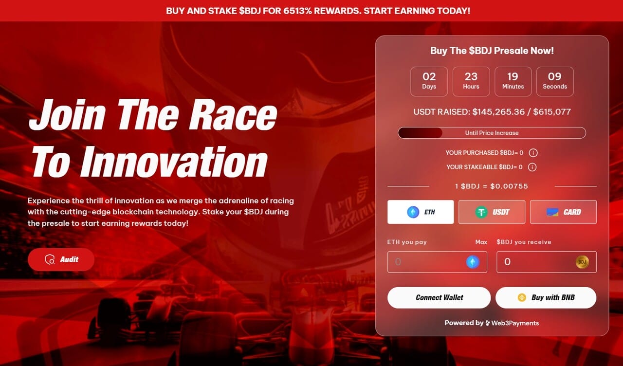该项目目前正处于预售阶段,早期投资者可以购买 $BDJ 代币,并将其质押以获得超过 6,000% 的丰厚收益率。由于这个年化收益率 (APY) 会下降,因此尽早质押是明智之举,尤其是如果你本来计划参与预售的话。关注 Race to a Billion 在 X 上获取最新动态。