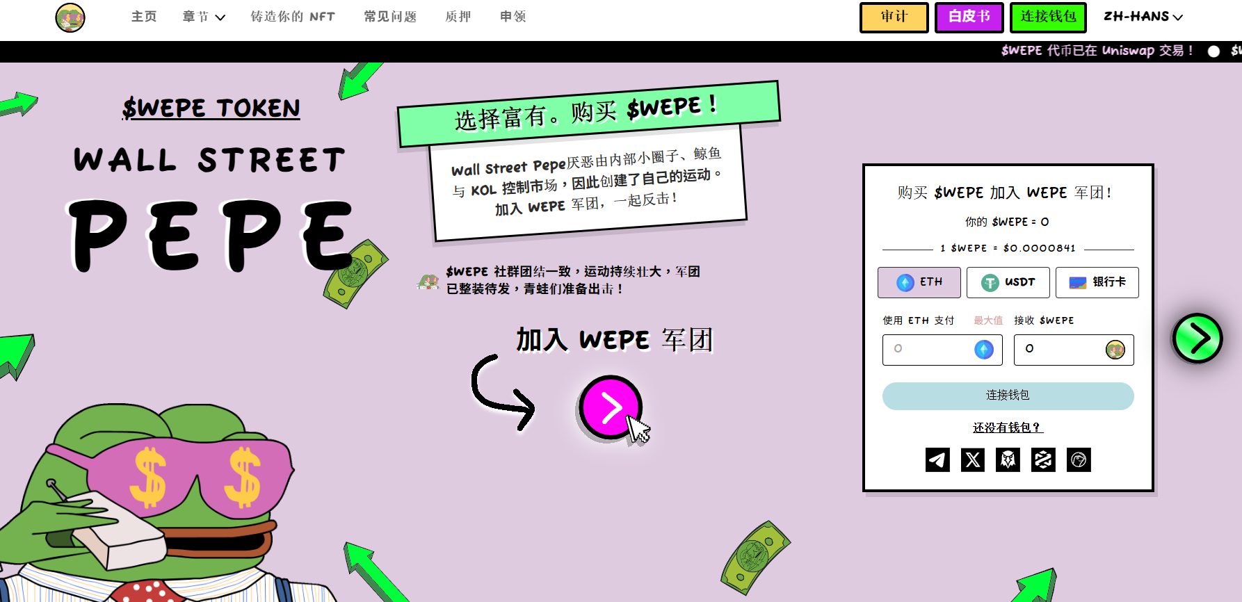 Wall Street Pepe(简称 WEPE)是金融世界中的另类玩家,用迷因方式挑战权威与资本垄断。