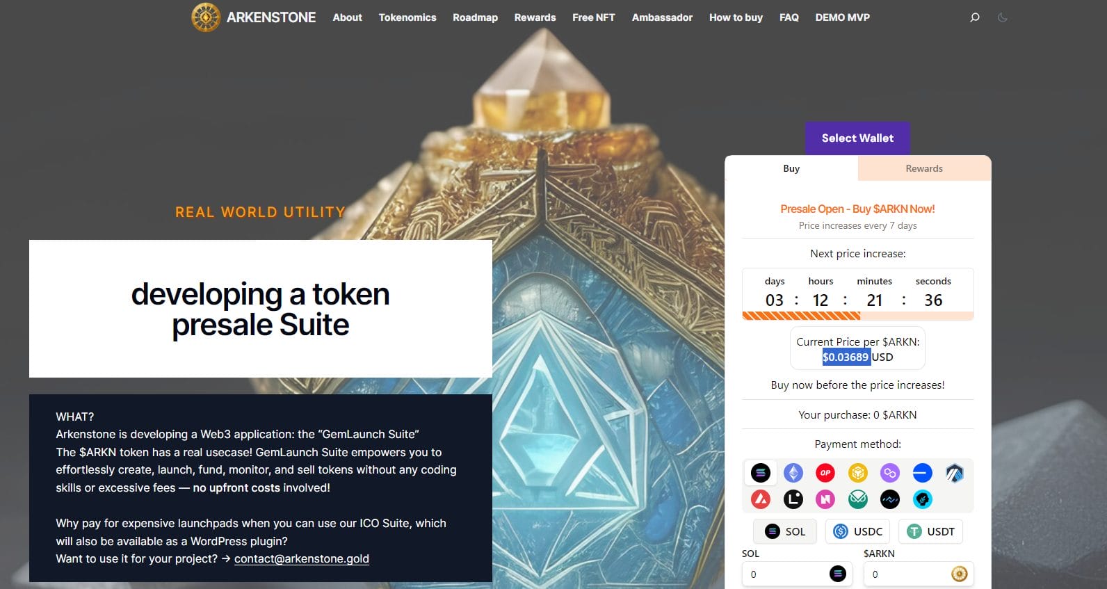 早期投资者将获得独家 NFTs 奖励,平台内置的 SOL ATM 功能简化了使用任何加密货币购买 ARKN 代币的过程。Arkenstone 的代币定价为 $0.0464,预计在 2024 年有显著增长潜力。要了解更多信息并保持更新,请阅读白皮书,关注 Arkenstone 的 X 账户,并加入他们的 Telegram 频道。