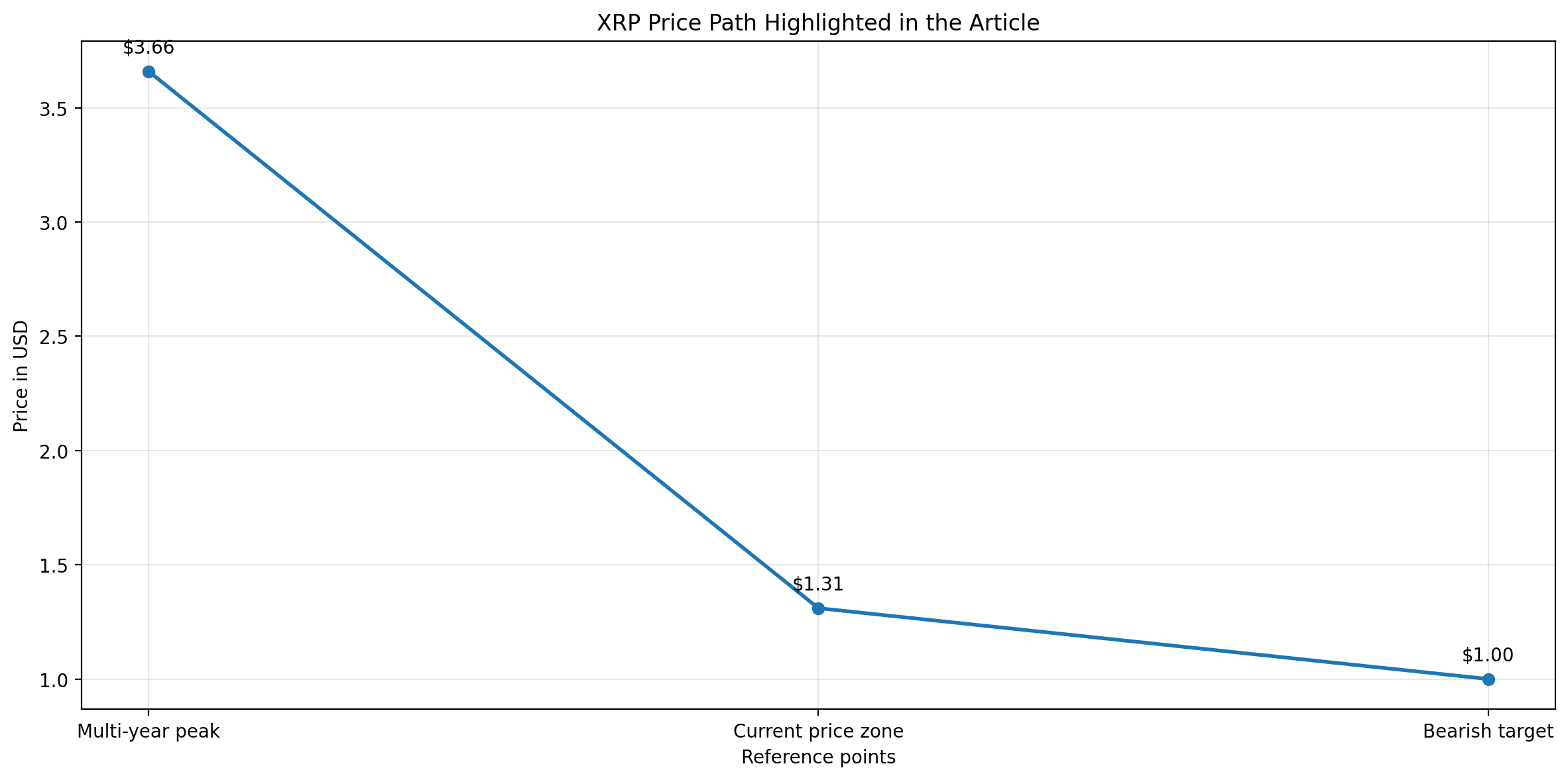 4月初,价格徘徊在1.31至1.35美元之间,交易者正密切关注1.30美元附近的支撑位能否守住,或者下一轮下跌是否会将瑞波币拖向1.00美元。这是当前2026年瑞波币价格预测的核心争论点,其背景是网络活动减弱、机构需求疲软,以及图表结构依然偏向看跌。